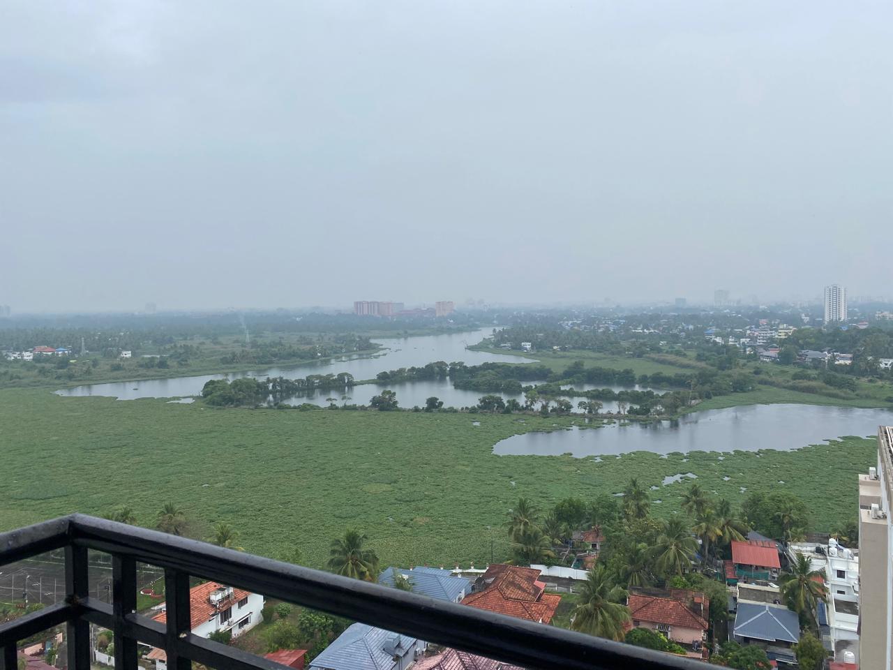 This 3 BHK fully furnished luxury apartment is situated in Vaduthala, Kochi. The flat is on the 16th floor of the building and offers the picturesque views of the lake.